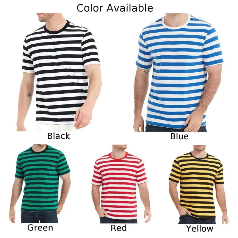 Men Striped Sailor T-Shirt Summer Loose O-Neck Top Casual Short Sleeve Tee Sport Fashion Holiday Daily Casual Outwear