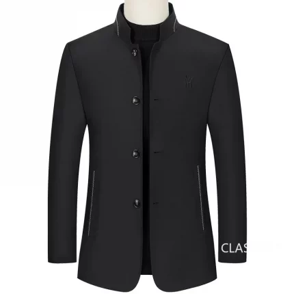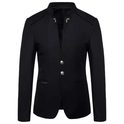 Men Blazer Coat 2023 Spring New Fashion Button Decorative Chinese Style Slim Fit Stand Collar Solid Color Suit Jacket