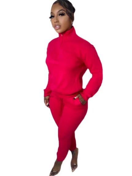 Wmstar Two Piece Set Women Tracksuit Zip Top and Pants Sets V Neck Sweatsuit Casual Clothes Matching Suit Wholesale Dropshpping