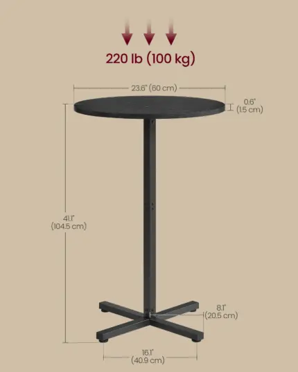 VASAGLE Bar Table, High Dining Table, Metal Frame, 60 x 60 x 104.5 cm, Easy to Assemble, With Cross Base, for 2-3 People, Modern