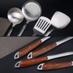 Home Kitchen & Bath Accessories 304 Stainless Steel Wooden Handle Kitchenware Home Kitchen Equipment, Style:, Fried Spatula, Soup Spoon, Slotted Shovel, Slotted Spoon