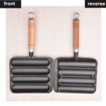 Home Kitchen & Bath Accessories Cast Iron Grill Pan 4-Grid Non-Stick Sausage Grill Pan With Wood Handle