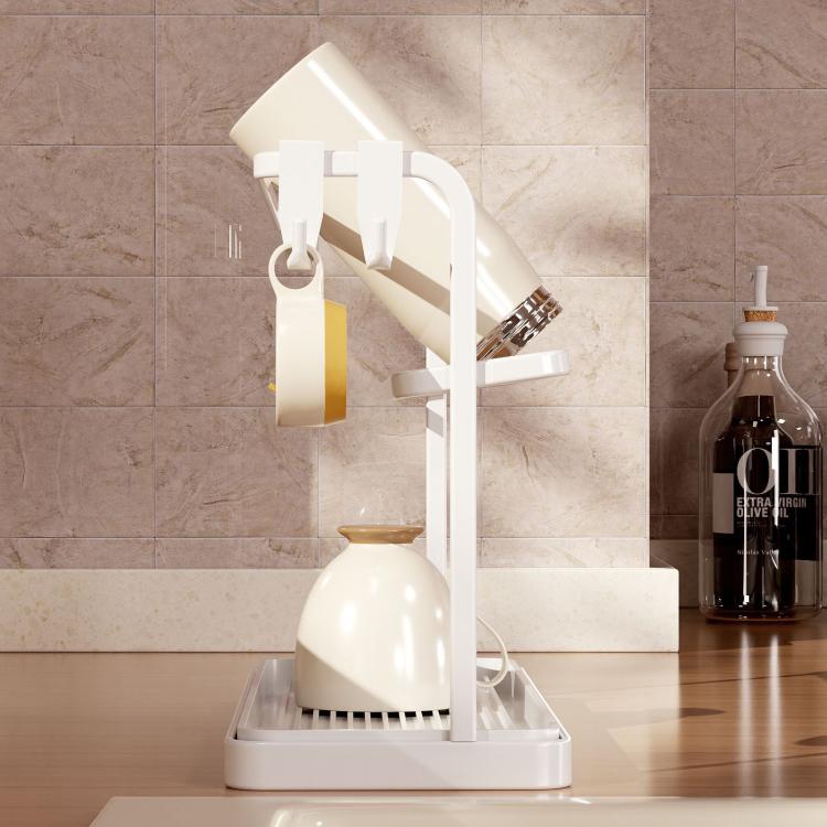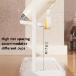 Home Home & Garden Accessories Double Tier Cup Rack With Removable Drip Tray Hanging Organizer For Coffee Mugs, Tea Cups, Thermos, And Glassware