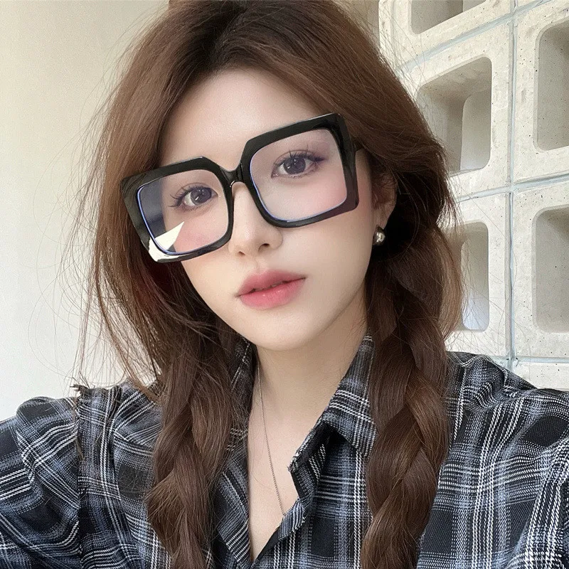 Korea Trendy Style Optical Glasses Frame Women Anti Blue Light Computer Eyewear Oversized Square Frame Spectacles Ladies
