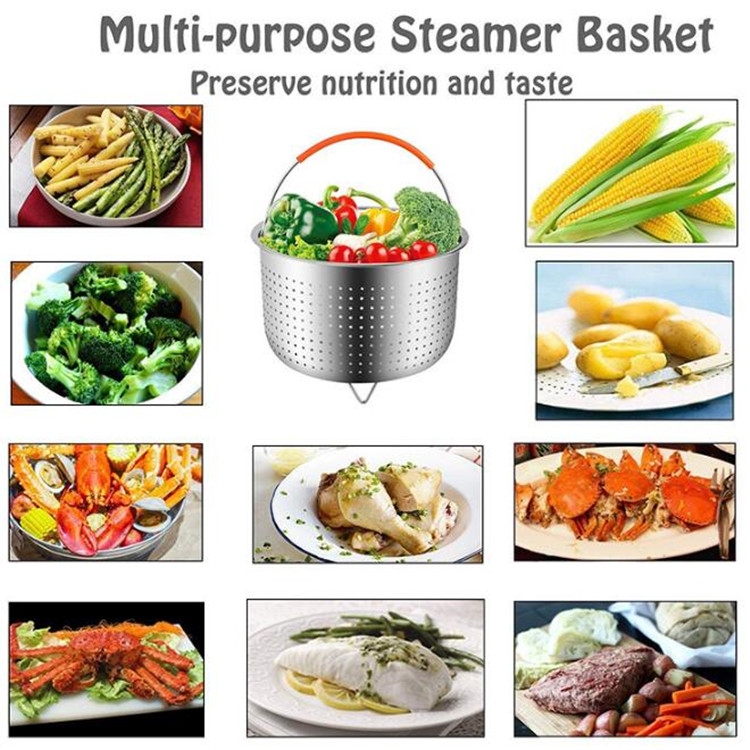 Home Kitchen & Bath Accessories Stainless Steel Steaming Basket Plug-in Silicone Handle Pressure Cooker Steamer Kitchen Cooker Accessories, 3 Quarts, 6 Quarts, 8 Quarts