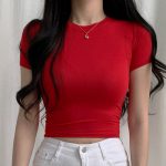 White Short-sleeved T-shirt Women's Summer 2024 New High Waist Solid Color Slim-fit Navel-exposed Short T-shirt Tight Top