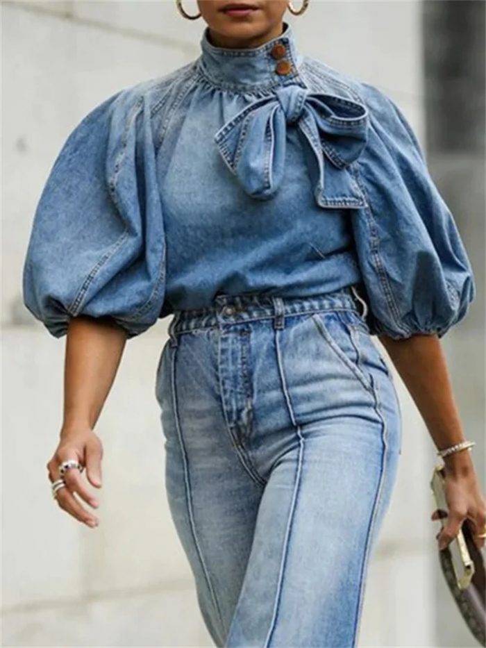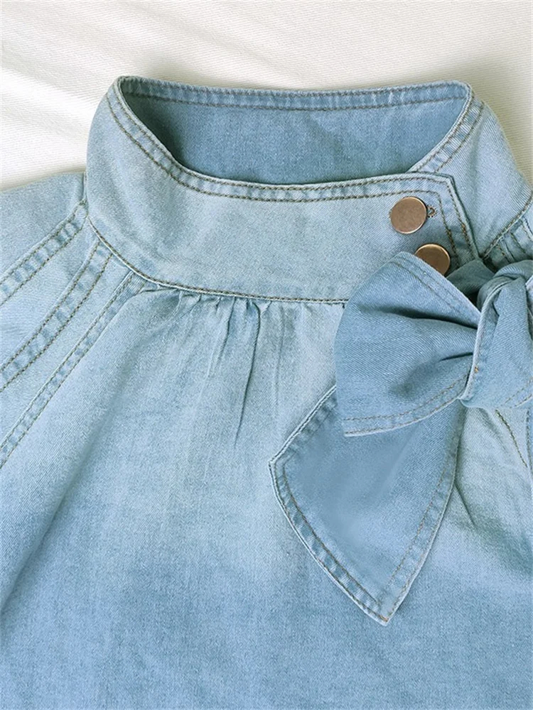 Wmstar Ladies Tops Vintage Denim Solid Corset Crop Top Blouse Long Sleeve Clothes for Women Spring Wholesale Dropshpping