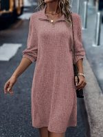 Product Fashion Loose U-neck Back Lace up Long sleeved Dress